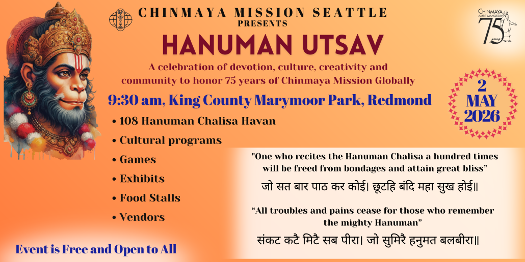 In 2026, we will mark a historic milestone – 75 years of Chinmaya Mission’s divine service. To honor this occasion, we are organizing the largest Hanuman Havan ever held in Seattle – a spiritual and cultural offering that brings together 2,000 devotees in an unforgettable experience of faith, devotion, and unity.