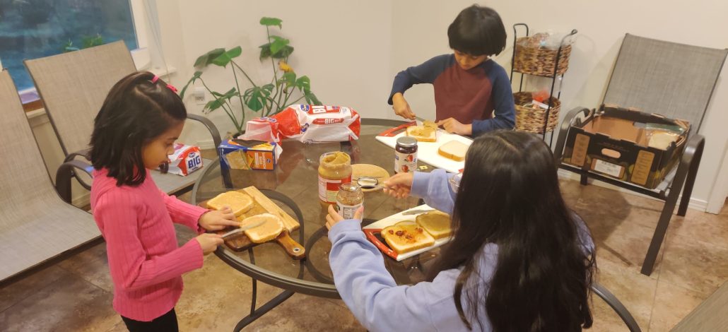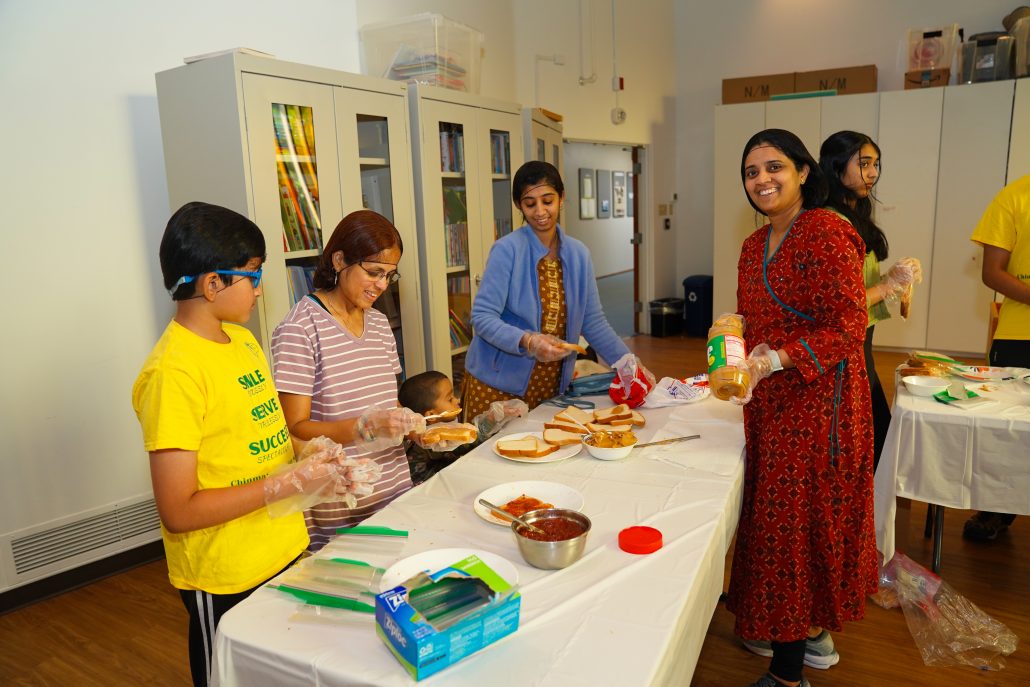 Chinmaya Mission Seattle (CMS) upholds its commitment to community service through the Sandwich Seva program, where volunteers prepare and distribute sandwiches to help combat food insecurity in the Greater Seattle area. Each month, CMS families come together to make approximately 500 sandwiches, which are donated to the Seattle Gospel Union Church for distribution to people experiencing homelessness or those in need in the community.